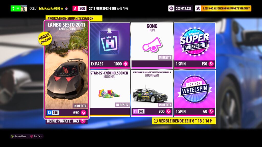 Wichtig: Seit Oktober 2024 hat der FORZATHON Shop enorm an Bedeutung gewonnen. Mittlerweile gibt es im Shop nämlich jede Woche einen Backstage-Pass, den man im Horizon-Backstage gegen ein heiß begehrtes Auto eintauschen kann.
